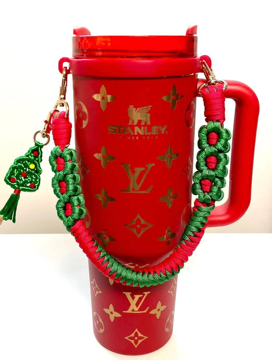 Christmas Braidded Hand Woven Carry On Cup Strap